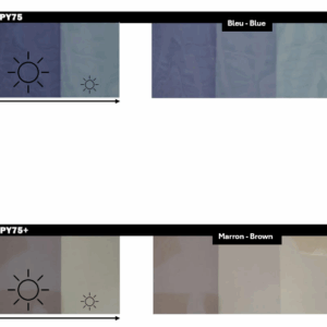 - Le temps de transition de foncé à clair est de 2 à 5 min, son rétablissement à l’état d’origine se fait de manière progressive une fois les UV réduits.